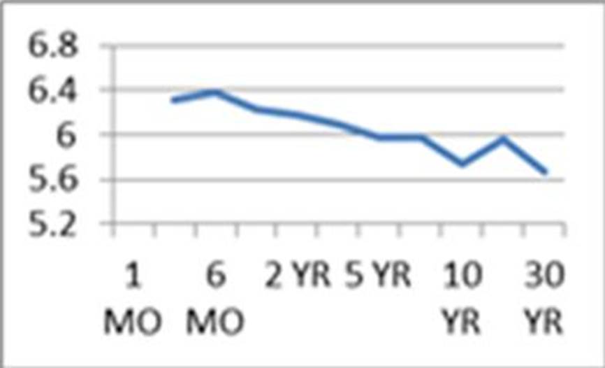 • 向下傾斜的收益率曲線表示隨著期限的增加